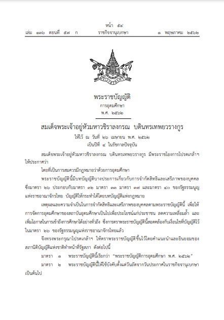 พระราชบัญญัติการศึกษาแห่งชาติ (ฉบับที่ 4) พ.ศ. 2562 |